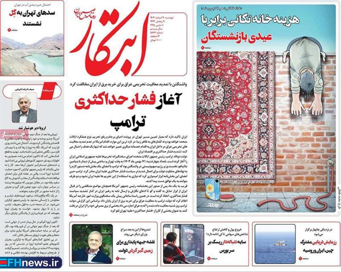 خلاصه خبرهای روز ۲۰ اسفندماه ۱۴۰۳ در جراید کشور به شرح زیر است: