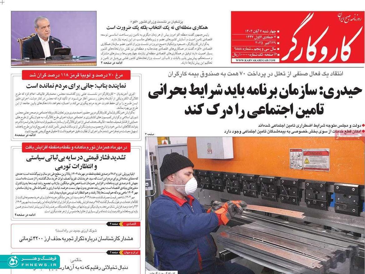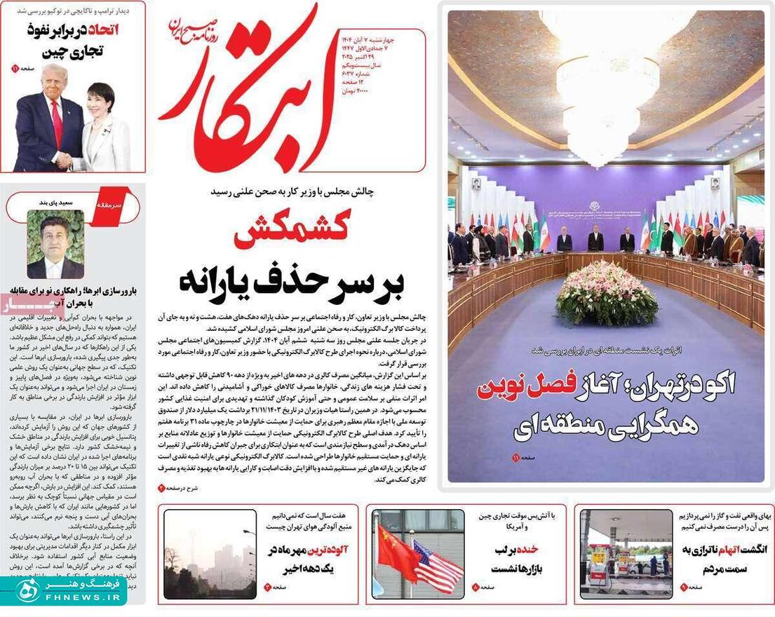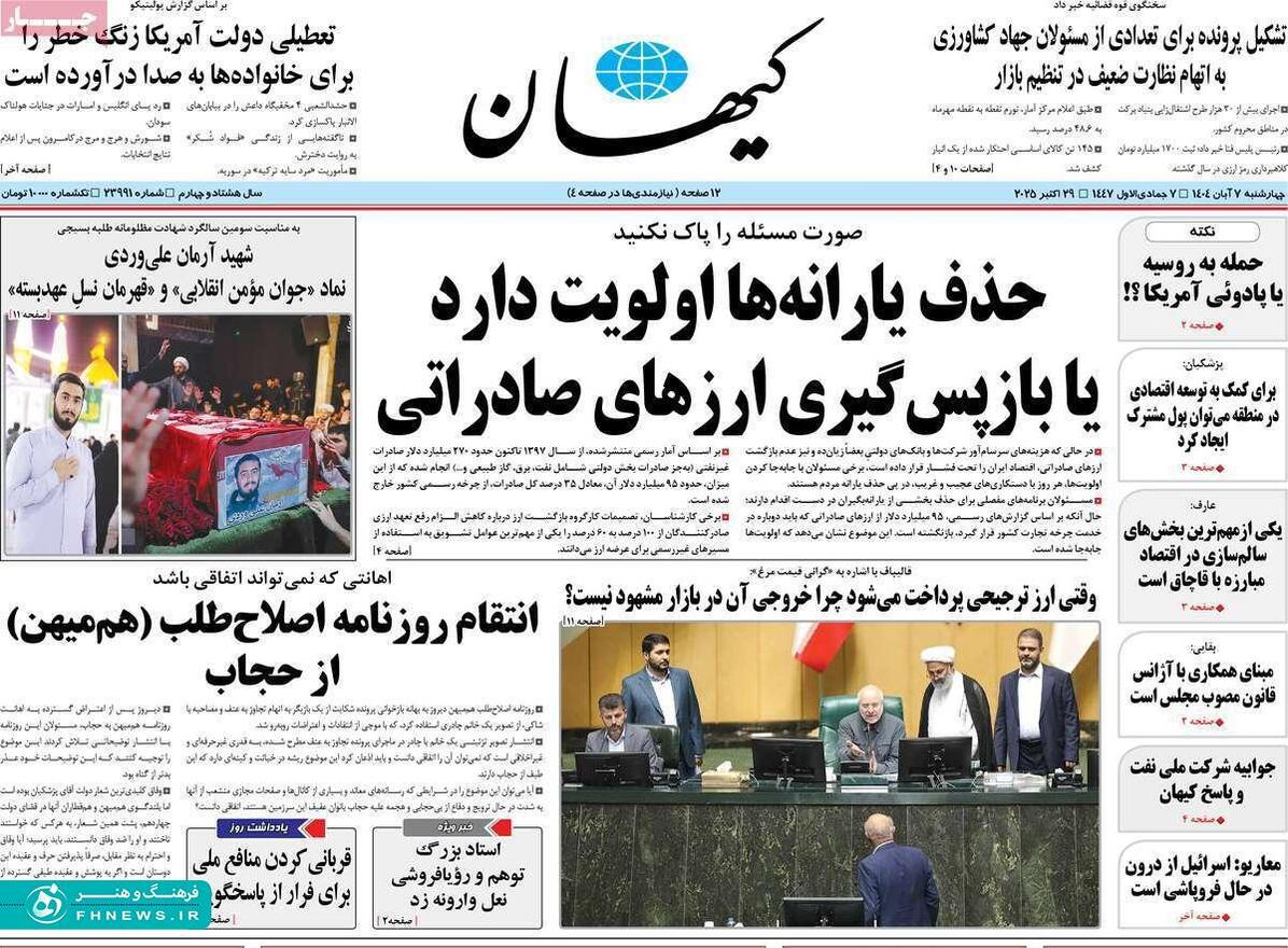 خلاصه خبرهای روز ۷ آبان ماه ۱۴۰۴ در جراید کشور به شرح زیر است: