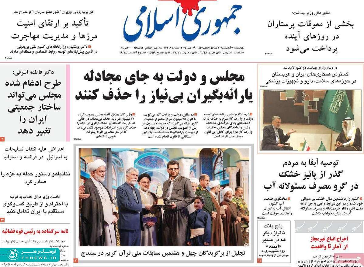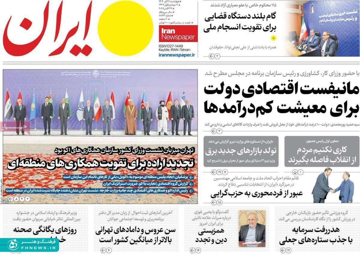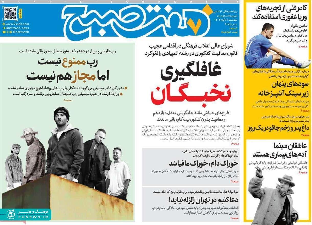 خلاصه خبرهای روز ۷ آبان ماه ۱۴۰۴ در جراید کشور به شرح زیر است: