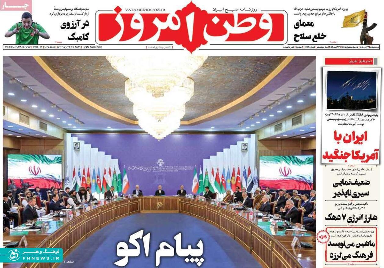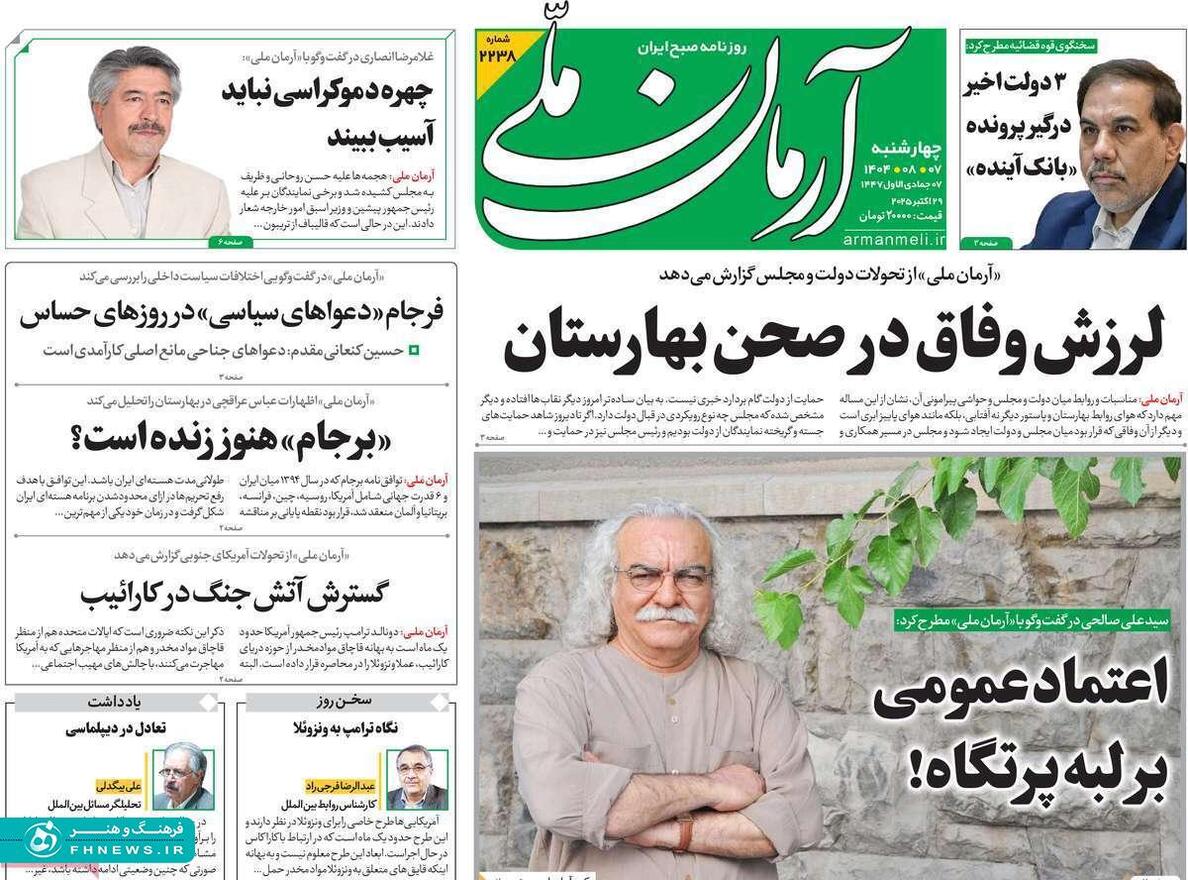 صفحه اول روزنامهها- چهارشنبه ۷ آبان ماه ۱۴۰۴