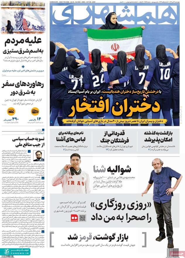 صفحه اول روزنامهها- سهشنبه ۶ آبان ماه ۱۴۰۴