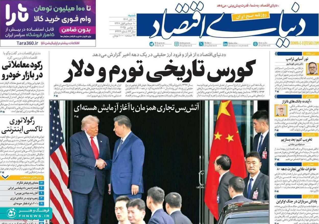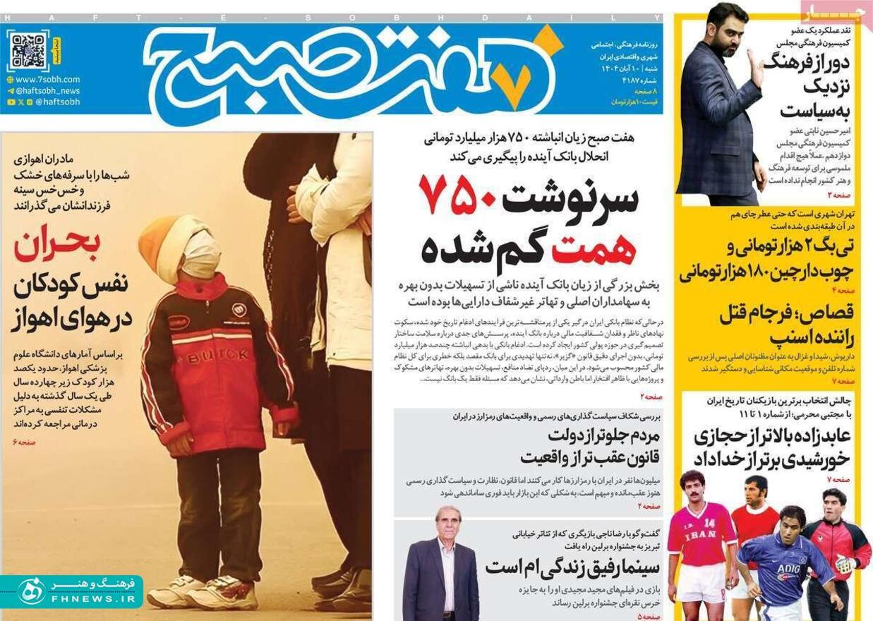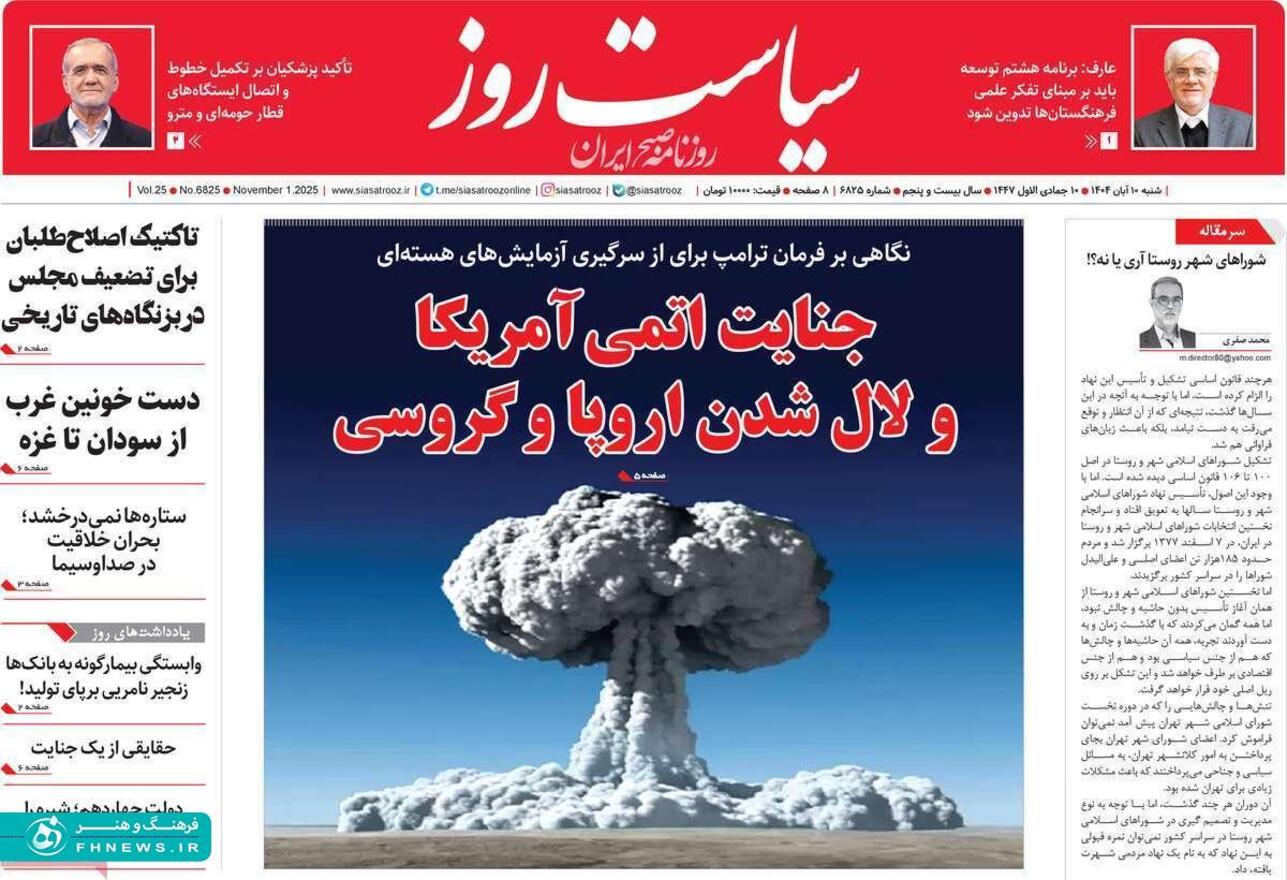 صفحه اول روزنامهها- شنبه ۱۰ آبان ماه ۱۴۰۴