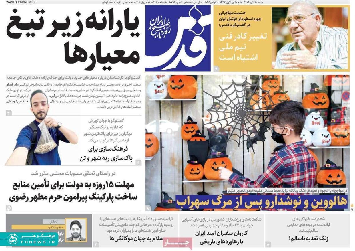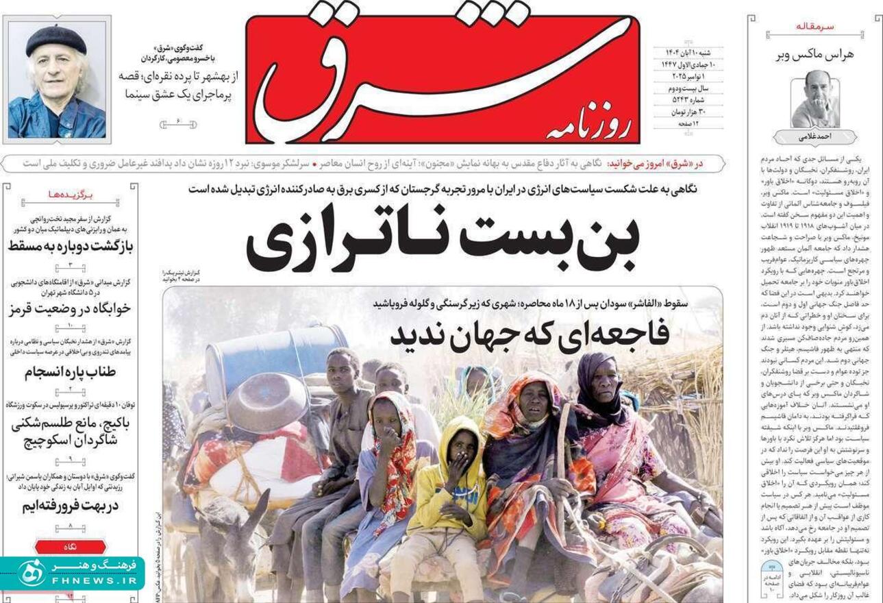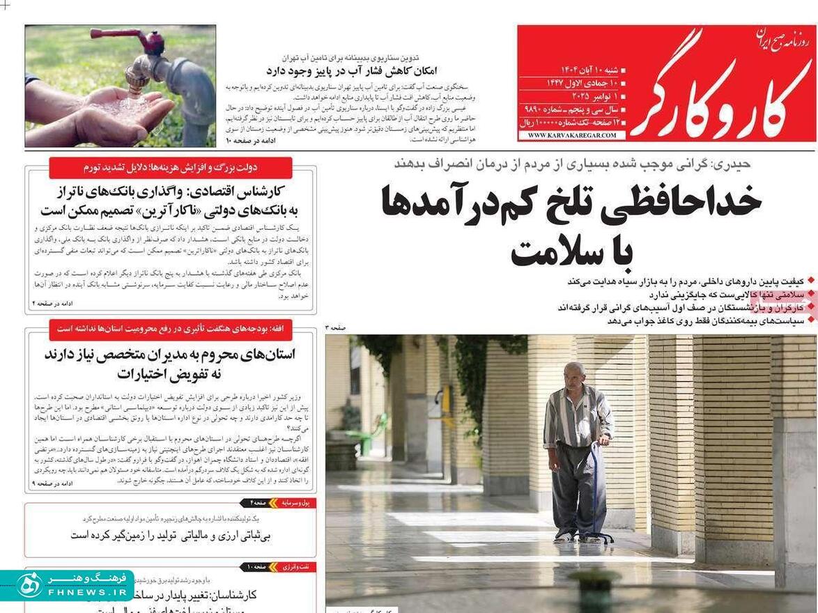 صفحه اول روزنامهها- شنبه ۱۰ آبان ماه ۱۴۰۴