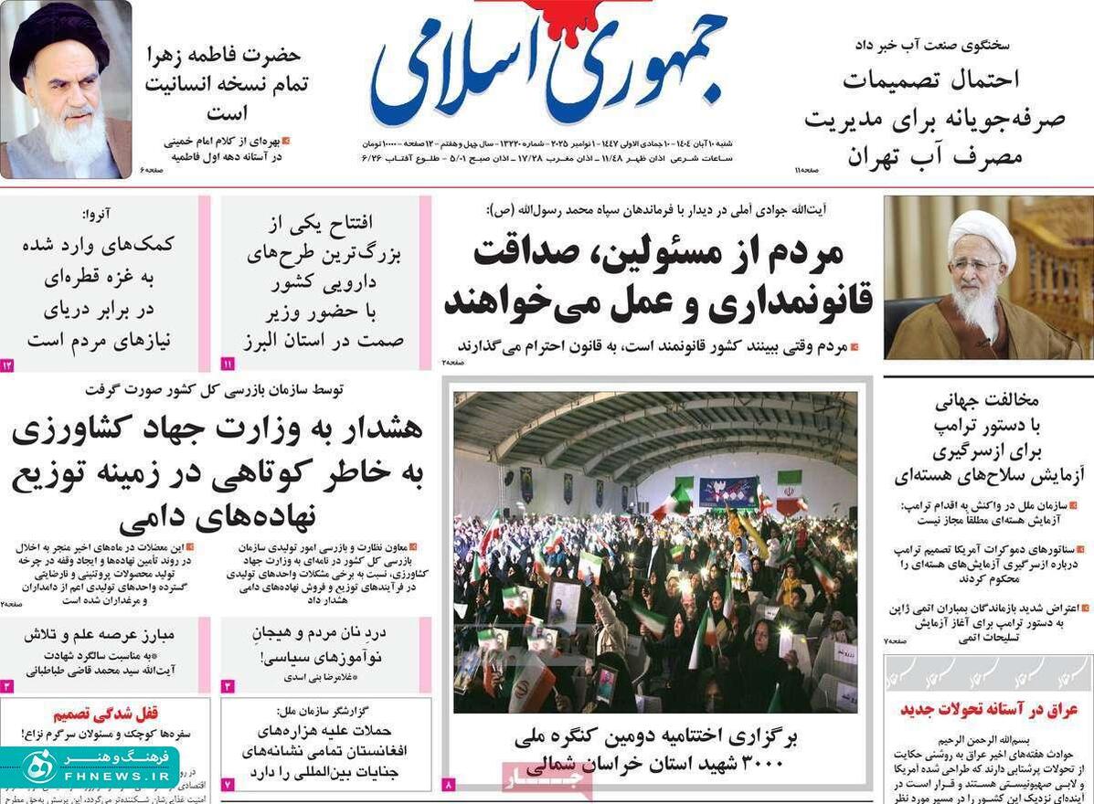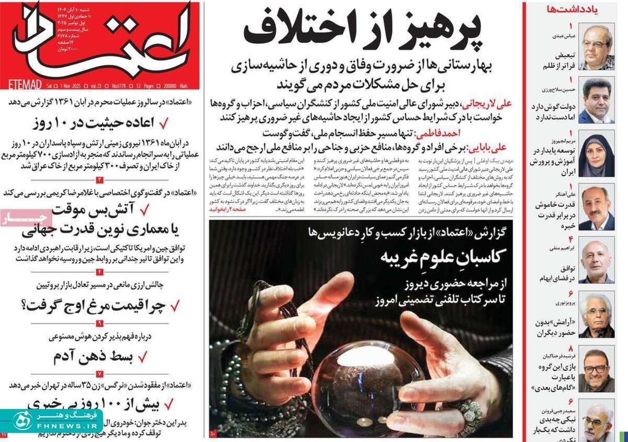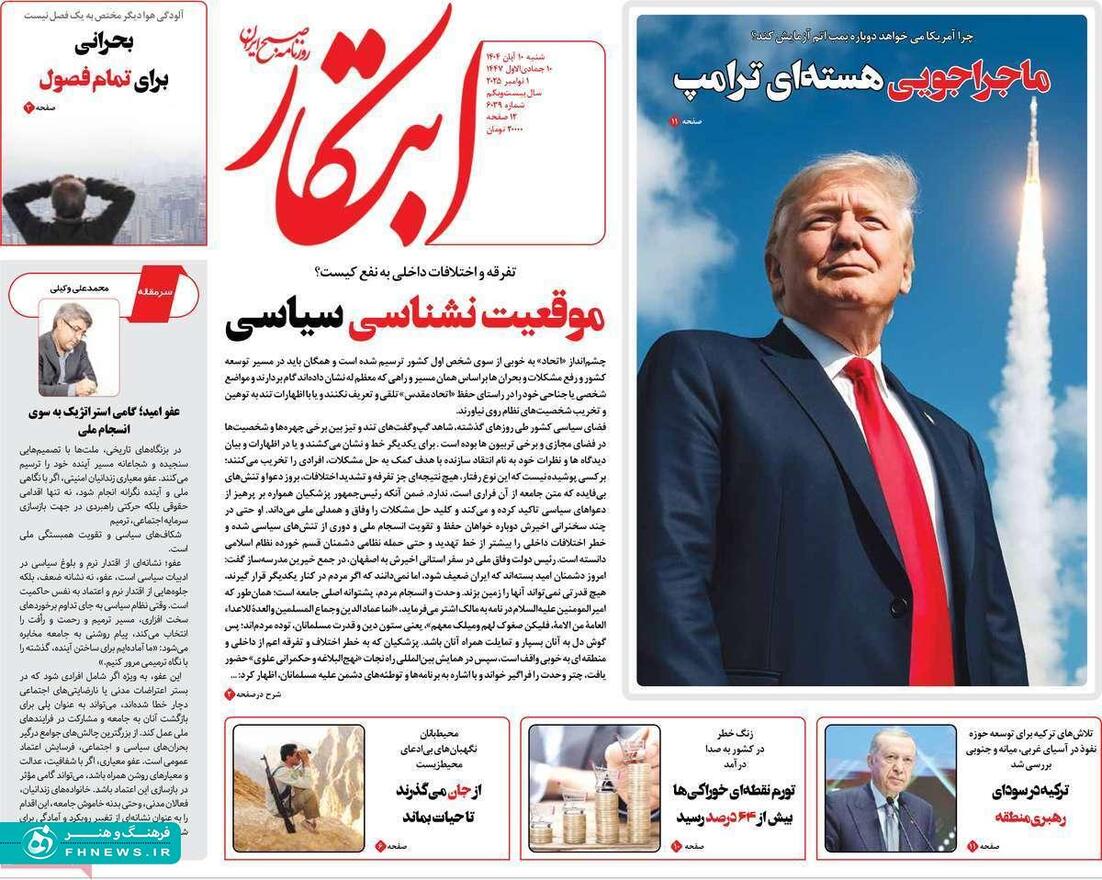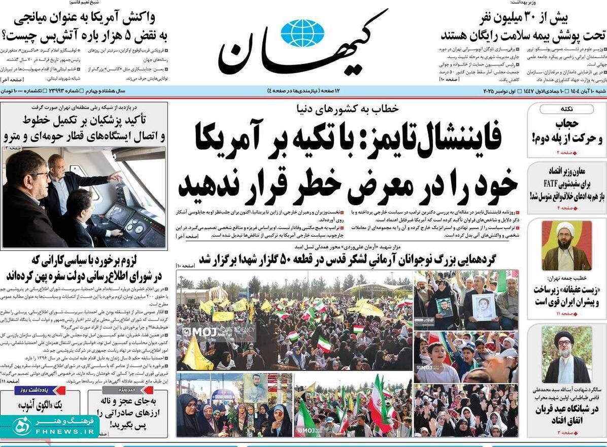 خلاصه خبرهای روز ۱۰ آبان ماه ۱۴۰۴ در جراید کشور به شرح زیر است: